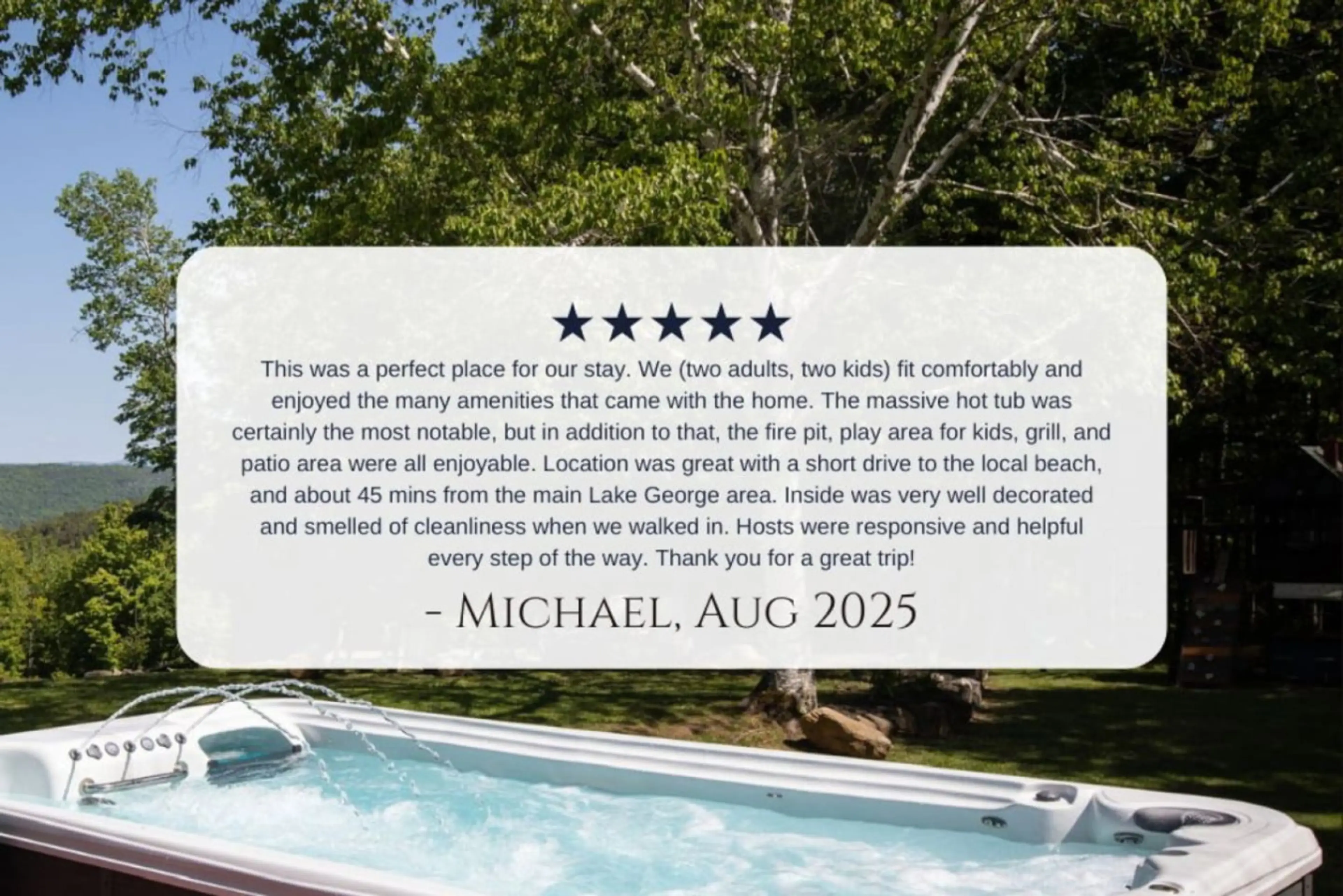 Our family really enjoyed this modern yet rustic home and all the amenities provided. The hot tub was a family favorite! Communication was clear and the homeowners were thoughtful with little details throughout the house. The spare toothbush provided really came in handy as someone in our party forgot theirs!