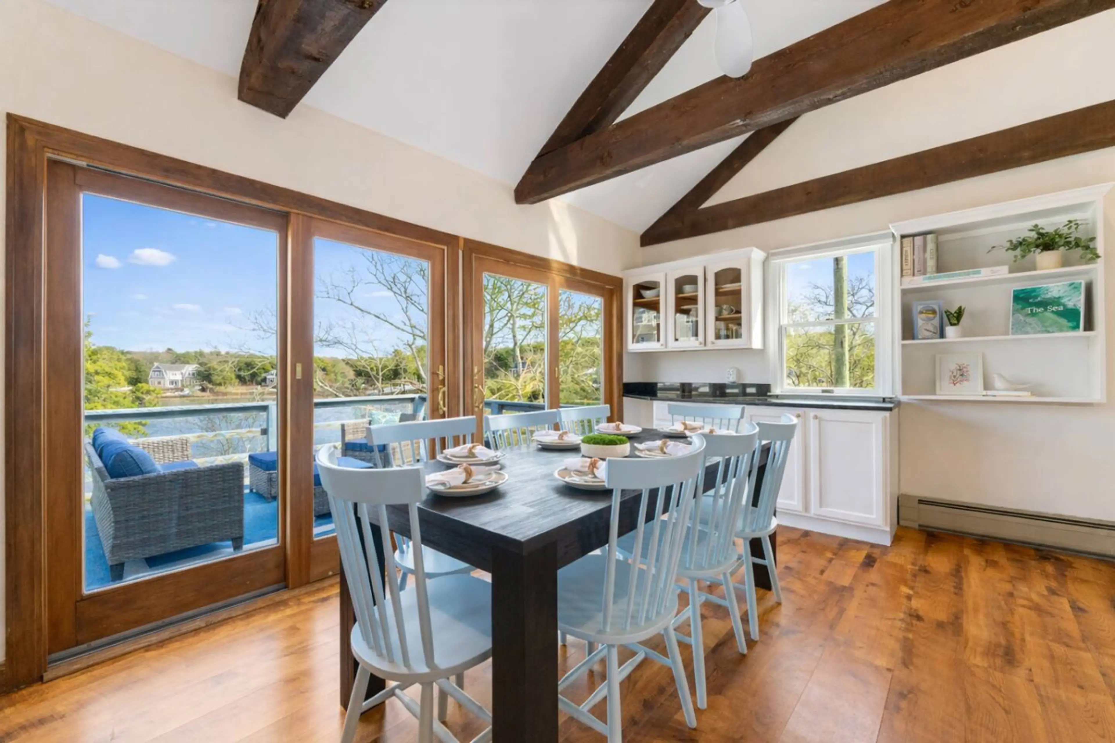 Wake up to stunning waterfront views at this beautifully designed Chatham retreat. The main level features an open living, dining, & kitchen space with double sliders to a deck overlooking the water. Three bedrooms and luxe radiant-heat baths await, while the primary king offers deck access and work...