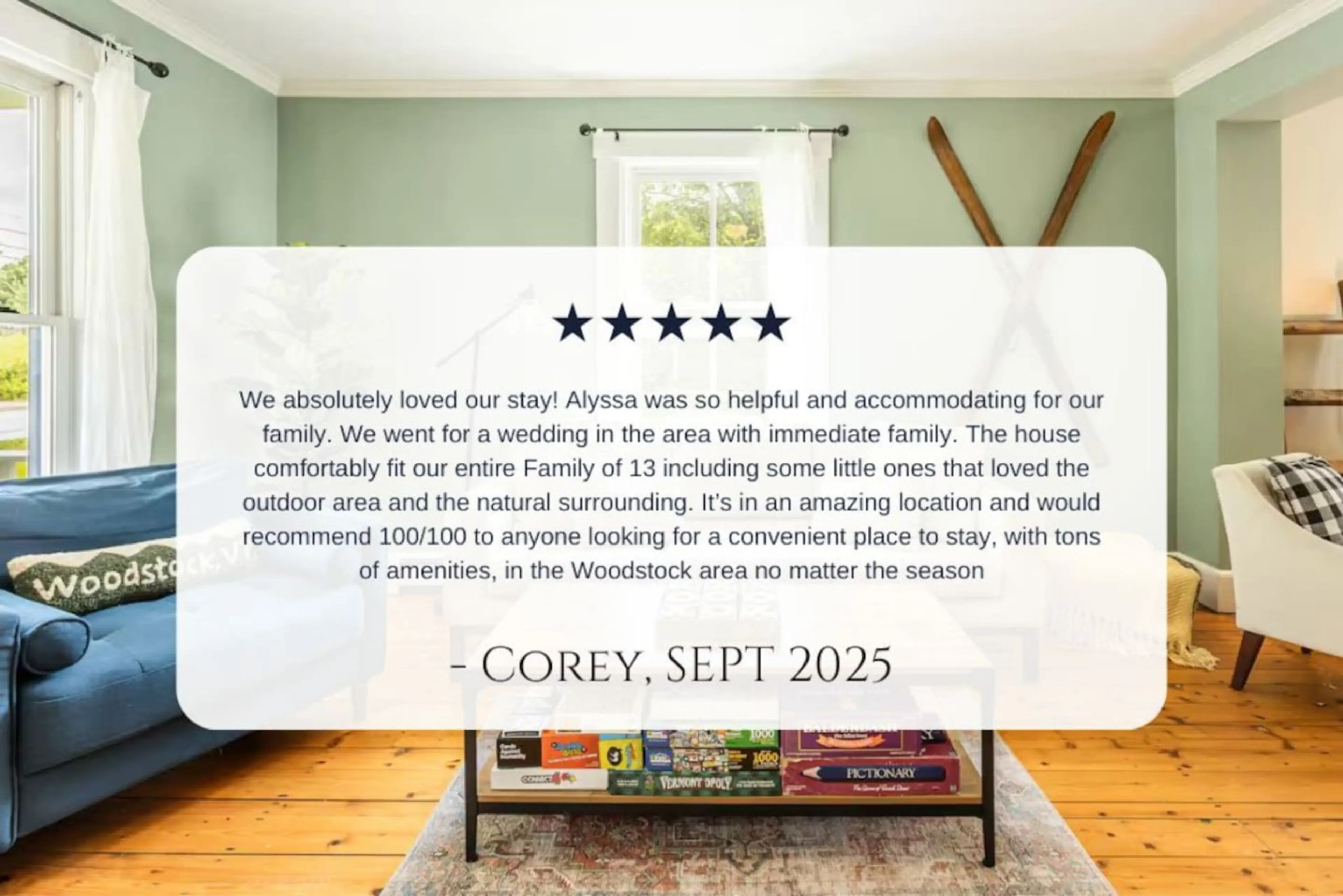 This property is very charming and located in an ideal spot to get around the area easily. We had a wonderful time playing games, doing puzzles, sitting in the hot tub, and exploring the river.